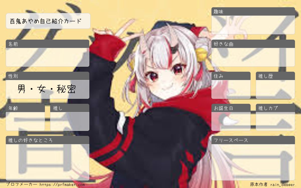 百鬼あやめ自己紹介カードを作る事が出来ます。