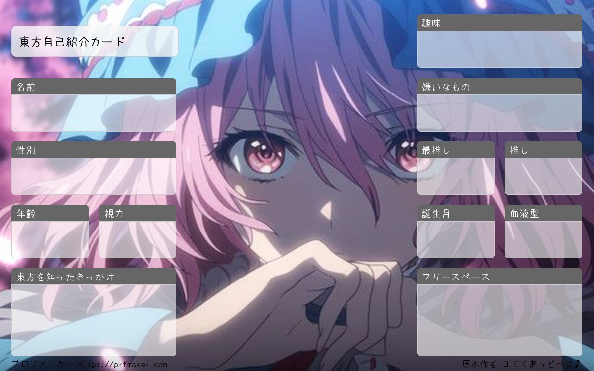 東方好きの自己紹介カード