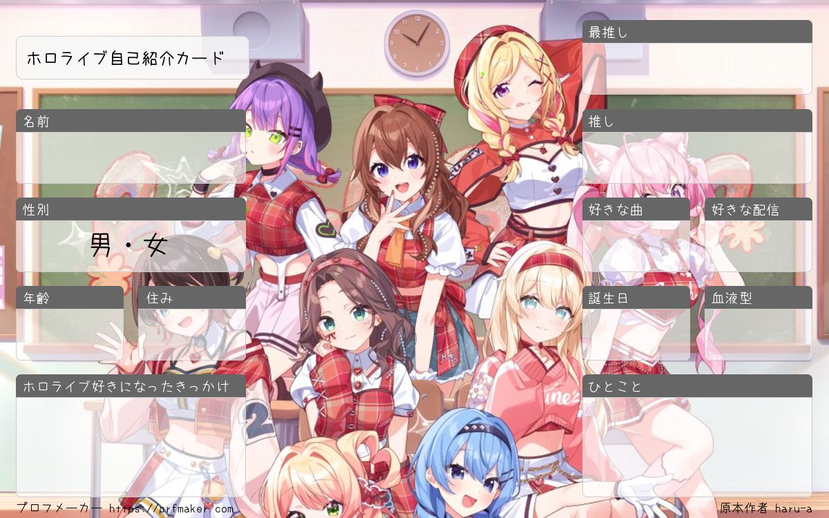 ホロライブ自己紹介カードを作る事が出来ます。