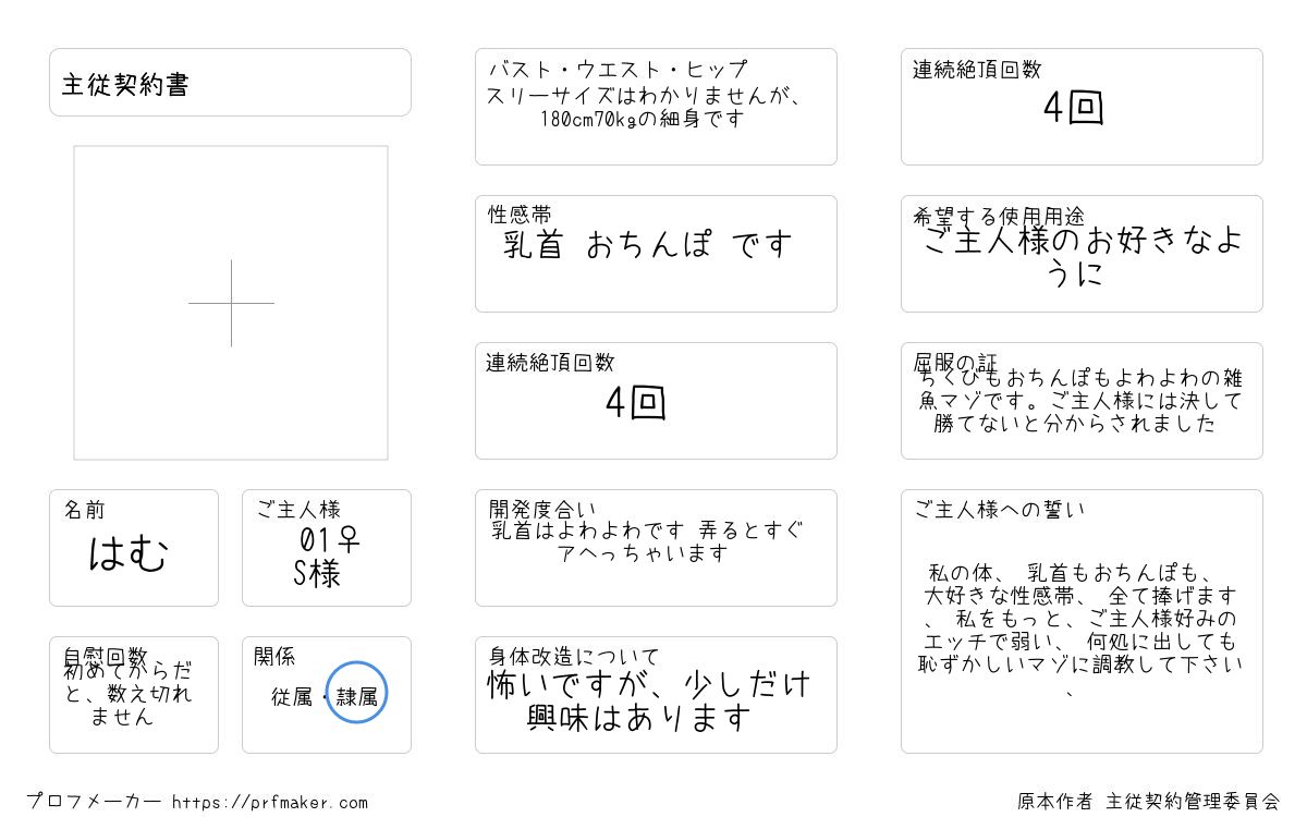 従属・隷属希望者が主従契約を結ぶ際に必要な書類となります。 隷属希望者は別紙:人権喪失届の提出が必要です