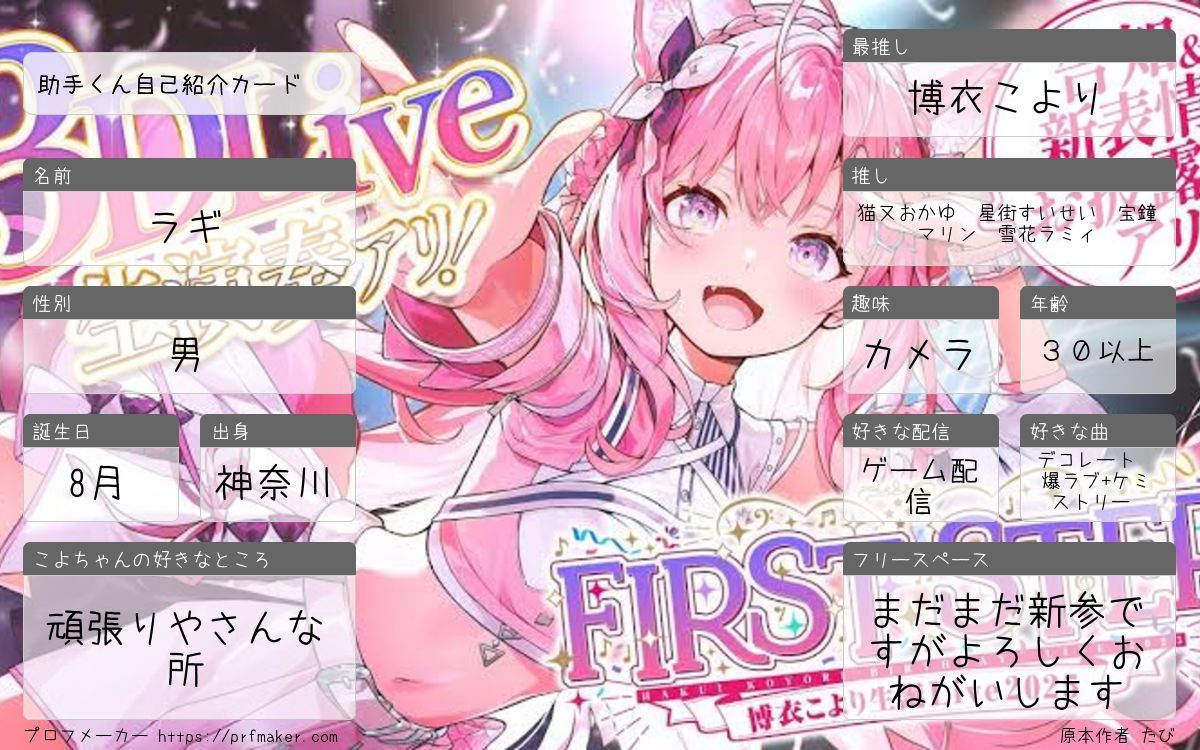 ホロライブの博衣こよりちゃん推しの人のための自己紹介カードです