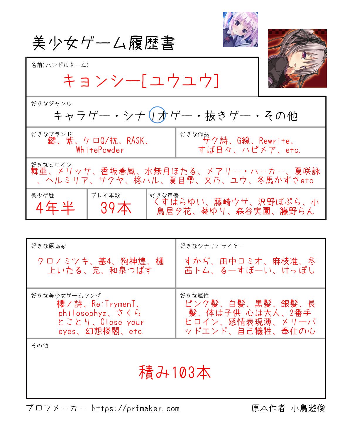 美少女ゲームプレイヤー向けの履歴書です。 2度の修正を経ました。