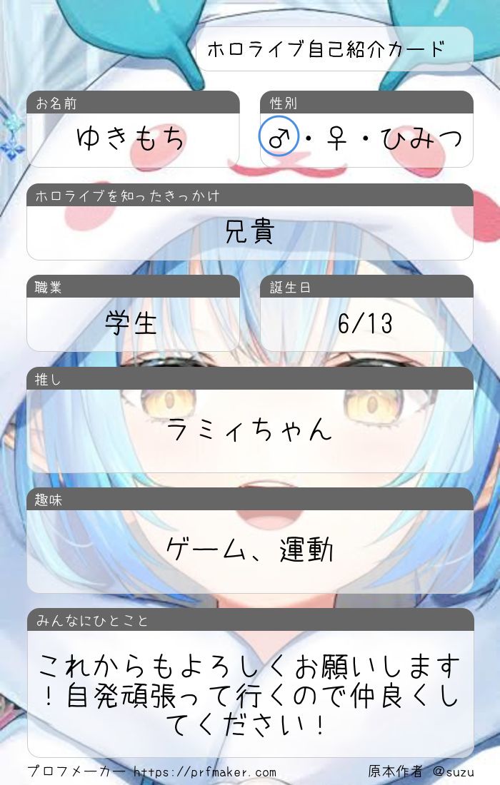 ホロライブ5期生雪花ラミィ様推し用の自己紹介テンプレートです