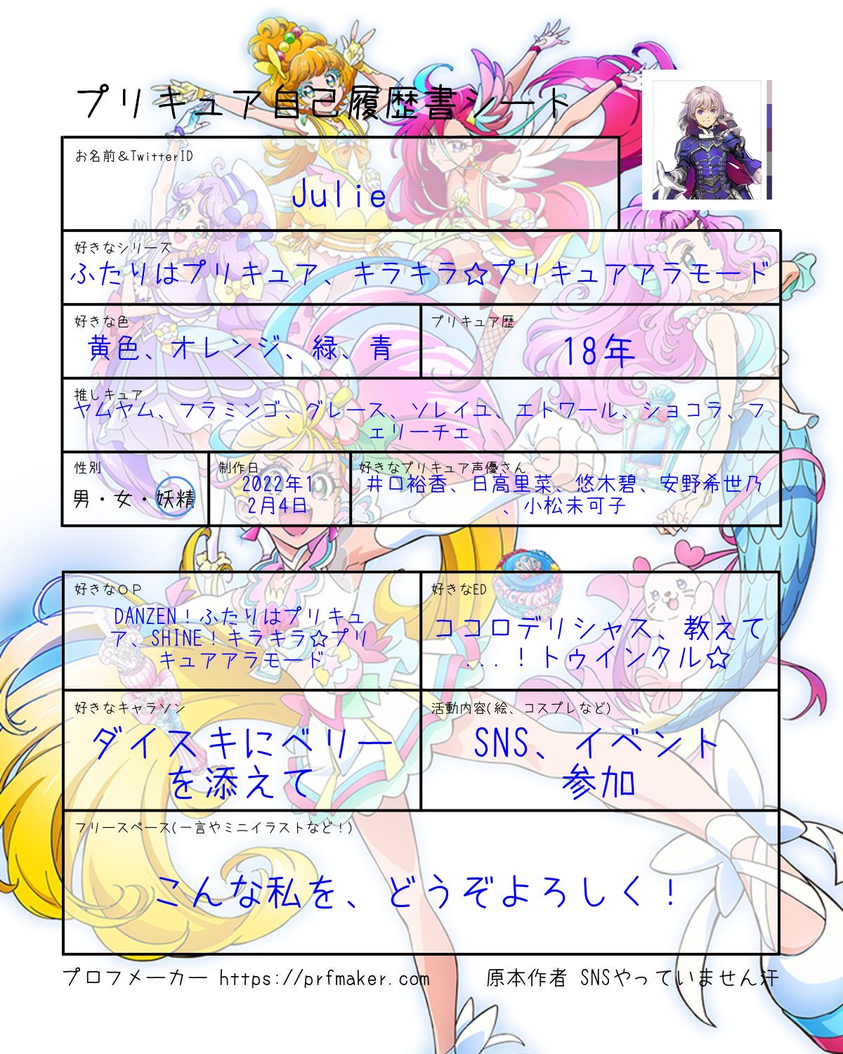 プリキュア好きな方にやってもらいたいです! 主はSNS等やってませんが、TwitterなどのアップOKです!加工なども大丈夫です! (一応「いりのる」と名乗っておきます!始めるかはわかりませんが)