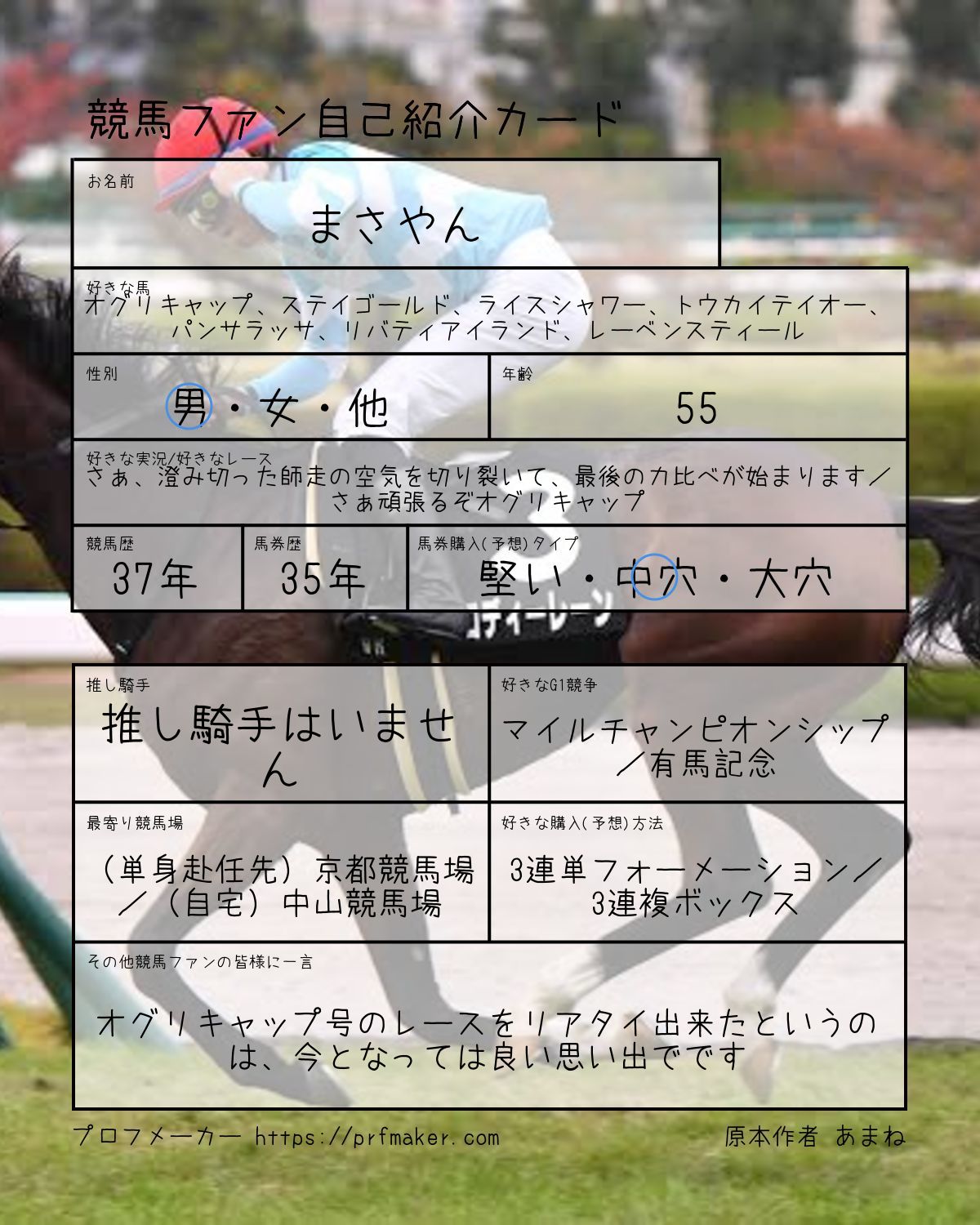 競馬が好きな人、競馬は好きじゃないけど馬術は好きな人、ウマ娘が好きな人のためではなく。自分のために作ったお遊び感覚な自己紹介カード