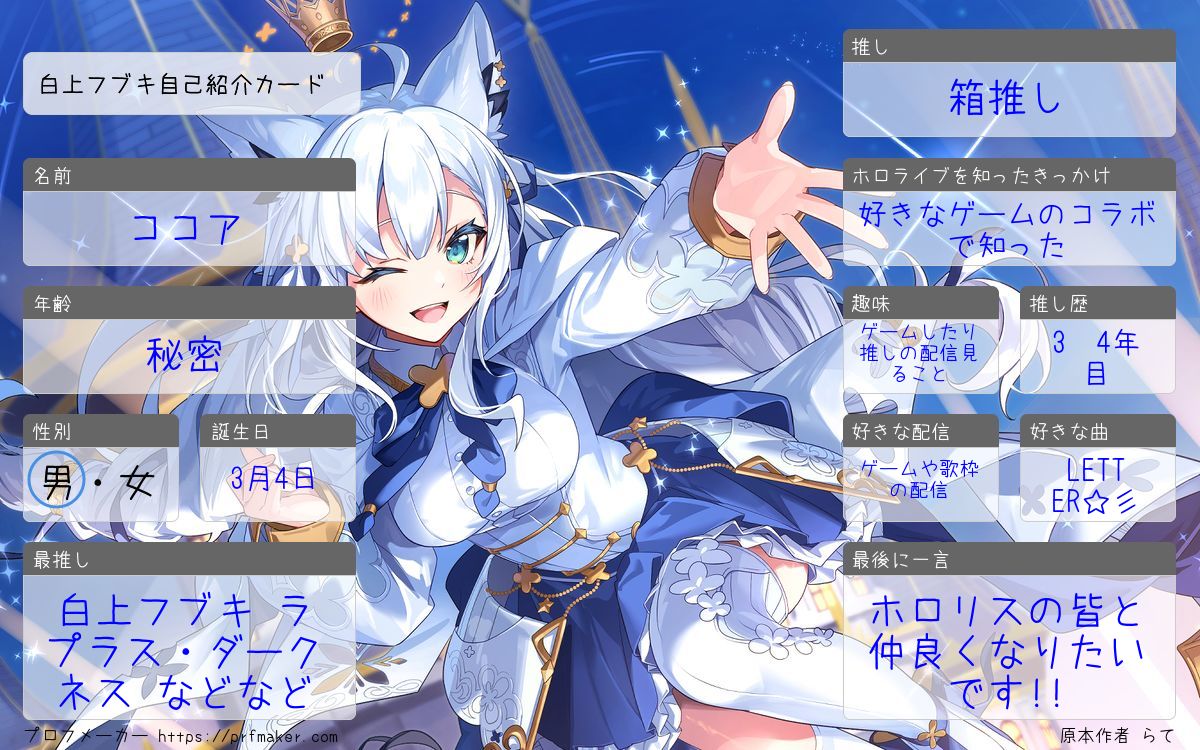 白上フブキ自己紹介カード