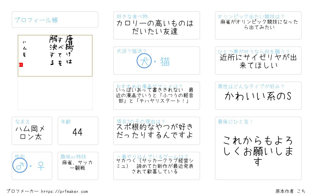 基本的なプロフィールをかく こういうのやってみたかった(笑)