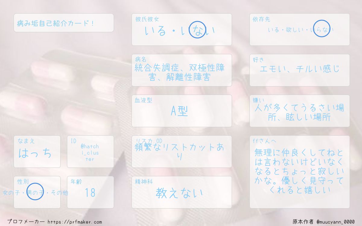 病み垢自己紹介カード!