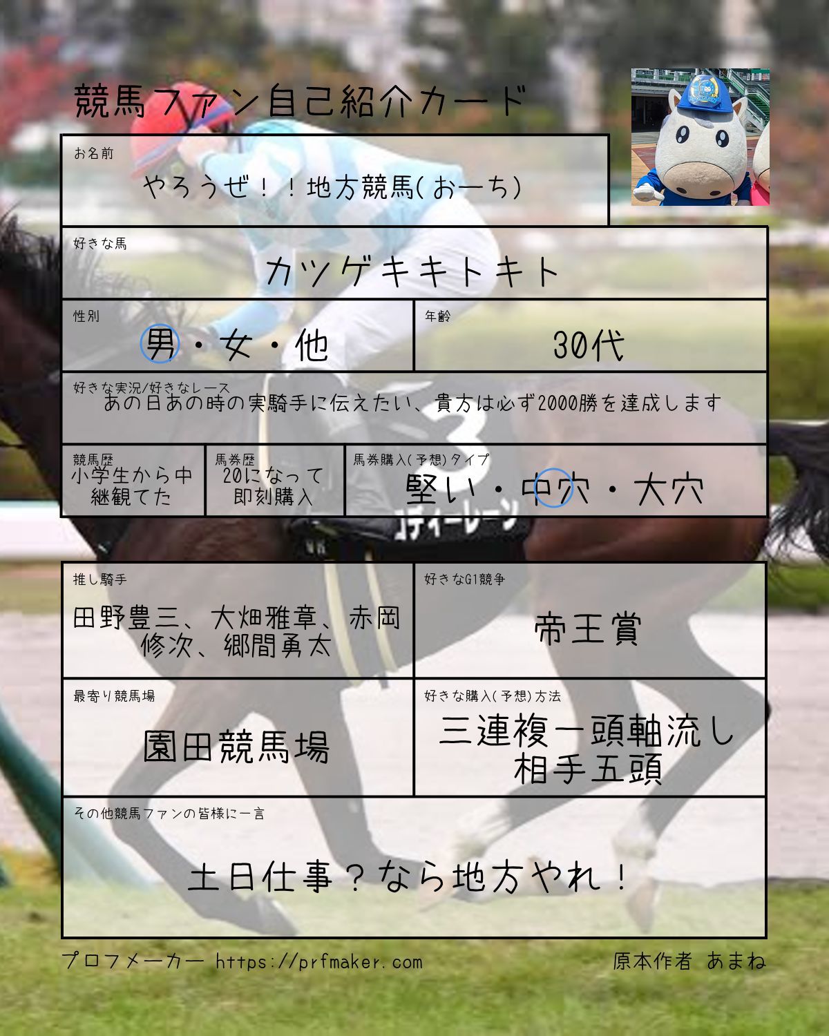 競馬が好きな人、競馬は好きじゃないけど馬術は好きな人、ウマ娘が好きな人のためではなく。自分のために作ったお遊び感覚な自己紹介カード
