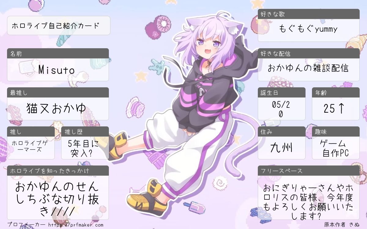 猫又おかゆ推し用の自己紹介カードです!
