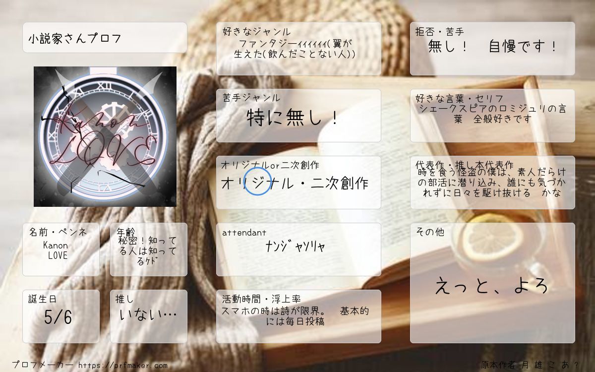 小説家さんプロフ