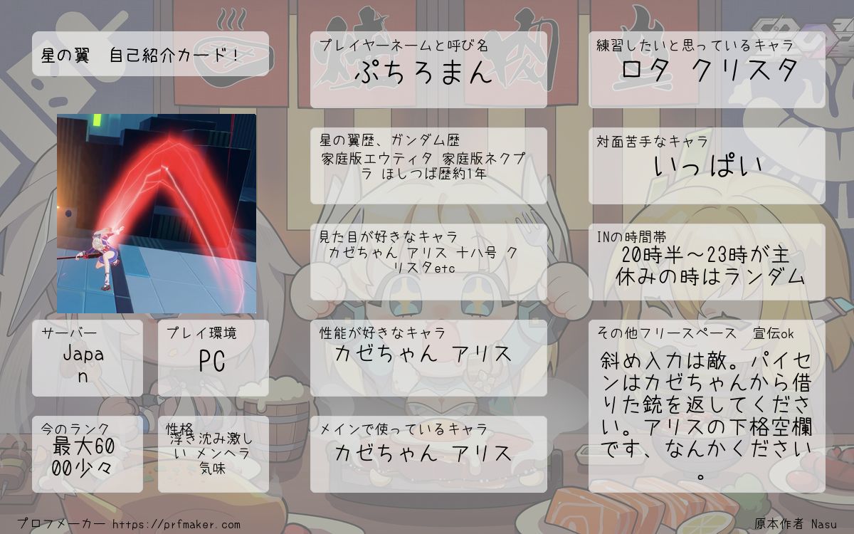 星の翼 starward で使える自己紹介カードです