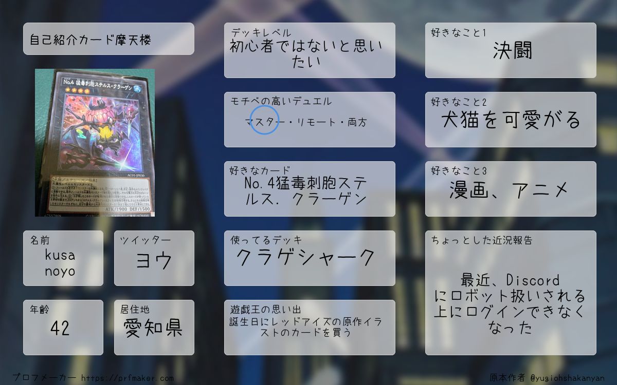 デュエルサークル摩天楼公式の自己紹介カードver2.2です!